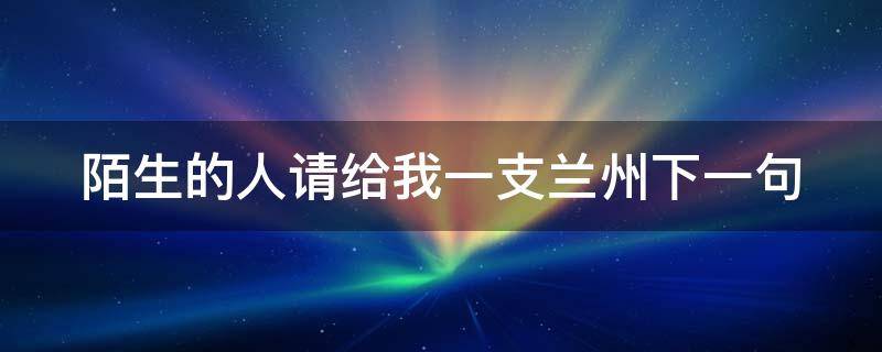 陌生的人请给我一支兰州下一句