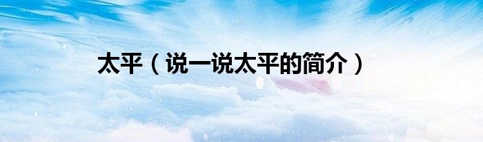 夏弥来为大家解答以下的问题,太平,说一说太平的简介,现在让我们一起来看看吧!