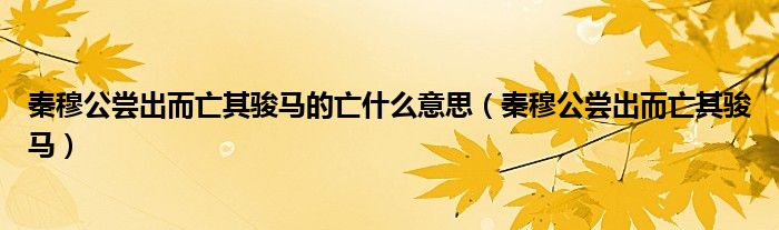 关于秦穆公尝出而亡其骏马的亡什么意思,秦穆公尝出而亡其骏马这个很多人还不知道,今天菲菲来为大家解答以上的问题,现在让我们一起来看看吧!