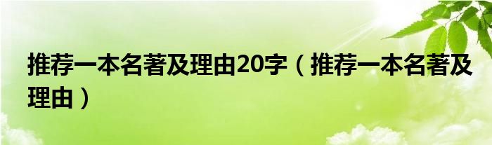 关于推荐一本名著及理由20字,推荐一本名著及理由这个很多人还不知道,今天菲菲来为大家解答以上的问题,现在让我们一起来看看吧!