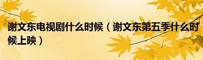 关于谢文东电视剧什么时候,谢文东第五季什么时候上映这个很多人还不知道,今天菲菲来为大家解答以上的问题,现在让我们一起来看看吧!