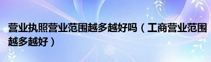 关于营业执照营业范围越多越好吗,工商营业范围越多越好这个很多人还不知道,今天菲菲来为大家解答以上的问题,现在让我们一起来看看吧!