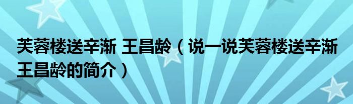 1、《芙蓉楼送辛渐二首》是唐代诗人王昌龄的组诗作品,作于作者被贬为江宁(今江苏南京)县丞时。