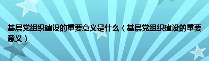 关于基层党组织建设的重要意义是什么,基层党组织建设的重要意义这个很多人还不知道,今天菲菲来为大家解答以上的问题,现在让我们一起来看看吧!