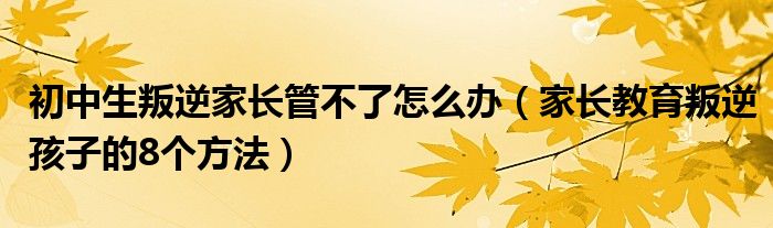大家好,乐儿来为大家解答以下问题,初中生叛逆家长管不了怎么办,家长教育叛逆孩子的8个方法很多人还不知道,现在让我们一起来看看吧!