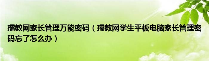 关于孺教网家长管理万能密码,孺教网学生平板电脑家长管理密码忘了怎么办这个很多人还不知道,今天菲菲来为大家解答以上的问题,现在让我们一起来看看吧!