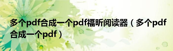 多个pdf合成一个pdf福昕阅读器(多个pdf合成一个pdf)