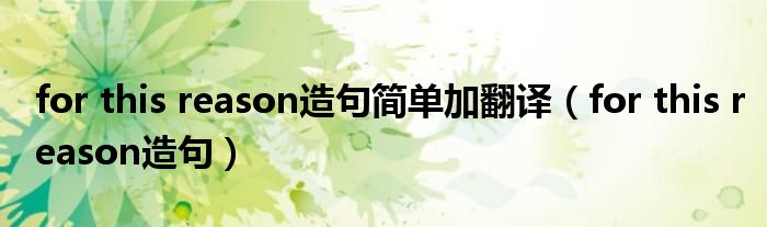 for this reason造句简单加翻译(for this reason造句)