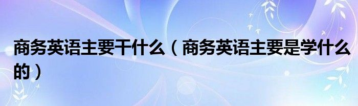 最佳答案大家好,乐儿来为大家解答以下问题,商务英语主要干什么,商务英语主要是学什么的很多人还不知道,现在让我们一起来看看吧!1、 一、 专业简介2、 商务英语是以适应职场生活的语言要求为目的,内容涉及到商务活动的方方面面。3、 商务英语课程不只是简单地对学员的英文水平、能力的提高,它更多地是...