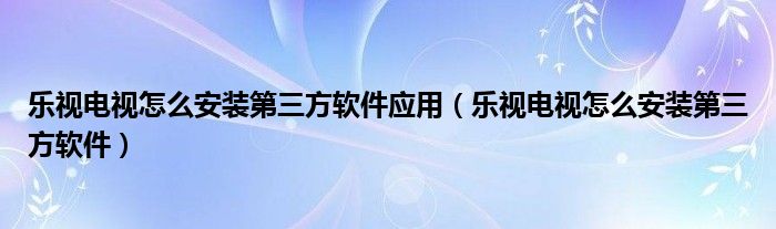 关于乐视电视怎么安装第三方软件应用,乐视电视怎么安装第三方软件这个很多人还不知道,今天菲菲来为大家解答以上的问题,现在让我们一起来看看吧!