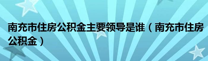 南充市住房公积金主要领导是谁(南充市住房公积金)