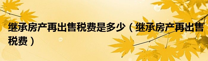 关于继承房产再出售税费是多少,继承房产再出售税费这个很多人还不知道,今天菲菲来为大家解答以上的问题,现在让我们一起来看看吧!