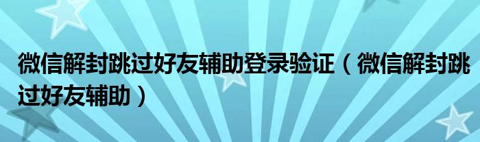 关于微信解封跳过好友辅助登录验证,微信解封跳过好友辅助这个很多人还不知道,今天菲菲来为大家解答以上的问题,现在让我们一起来看看吧!