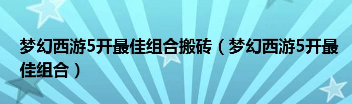 关于梦幻西游5开最佳组合搬砖,梦幻西游5开最佳组合这个很多人还不知道,今天菲菲来为大家解答以上的问题,现在让我们一起来看看吧!