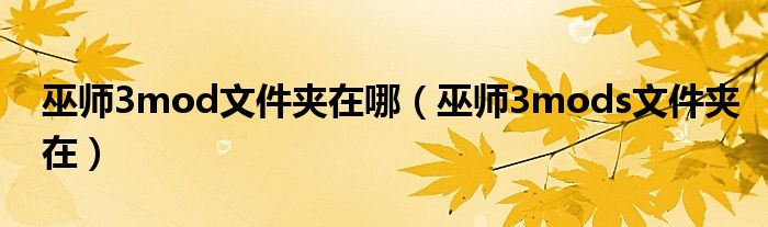 4、四、MODs文件夹的路径为D:wushi3MODs,不同的版本有不同的命名方式,但是存档MOD的位置都是在巫师三文件夹内。
