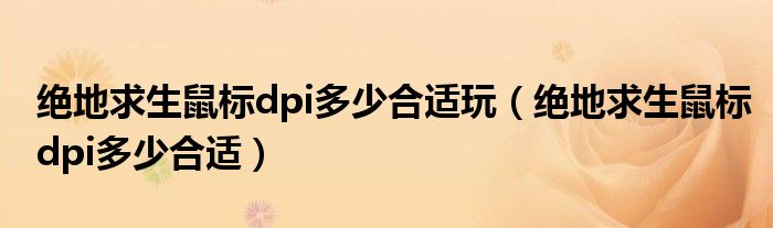 关于绝地求生鼠标dpi多少合适玩,绝地求生鼠标dpi多少合适这个很多人还不知道,今天菲菲来为大家解答以上的问题,现在让我们一起来看看吧!