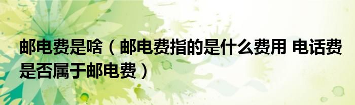 关于邮电费是啥,邮电费指的是什么费用 电话费是否属于邮电费这个很多人还不知道,今天菲菲来为大家解答以上的问题,现在让我们一起来看看吧!