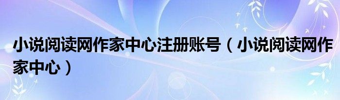 小说阅读网作家中心注册账号(小说阅读网作家中心)