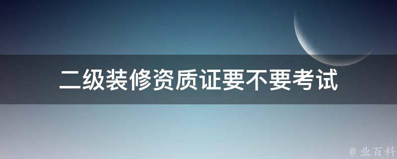 二级装修资质证要考试,在申请二级装修资质时,需要提供法人考安证。因为作为从事建设工程活动的单位,必须按照国家有关规定取得相应的资质并且经过安全生产条件审查合格后方可开展相关活动。而在进行装修工作时,也需要特种作业操作人员进行相关操作,其需要持证上岗并按照规定进行培训和考核。