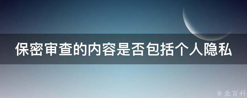 保密审查的内容不包括个人隐私。不属于信息公开保密审查内容的包括但不限于个人隐私、商业秘密和国家秘密。个人隐私是指与个人有关的信息,如姓名、出生日期、身份证号码、住址、电话号码等。这些信息不应该被公开,因为会侵犯个人隐私权。商业秘密是指企业或组织在经营活动中,为了保护自己合法利益而采取的各种措施所形成的各种资料、信息和知识。这些信息对企业或组织来说非常重要,如果泄露出去,将可能导致损失和竞争劣势。国家秘密是指国家安全和利益需要保守的情报、资料和其他有关国家安全和利益的事项。这些信息涉及到国家的核心利益,泄露出去将会给国家带来不可预测的危害,因此需要受到特殊保护。