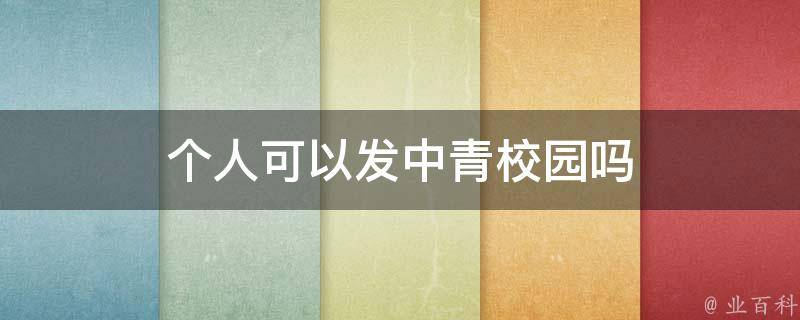 个人不可以发中青校园。因为中青校园更倾向于与学校、学生组织或官方合作,以提供有价值且经过审核的信息给在校大学生。如果您有一些有关校园生活、学习、就业等方面的信息想要分享,您可以尝试与所在学校的相关部门或学生组织合作,让他们将相关内容发布到中青校园或通过其他渠道与目标受众分享。