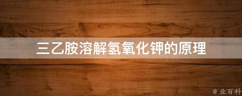 三乙胺溶解氢氧化钾的原理是酸碱中和反应。三乙胺是一种碱性物质,而氢氧化钾是一种碱性氢氧化物,因此它们都具有强碱性。当三乙胺和氢氧化钾混合在一起时,三乙胺中的氨基(-NH2)会与氢氧化钾中的氢氧根离子(OH-)发生反应。