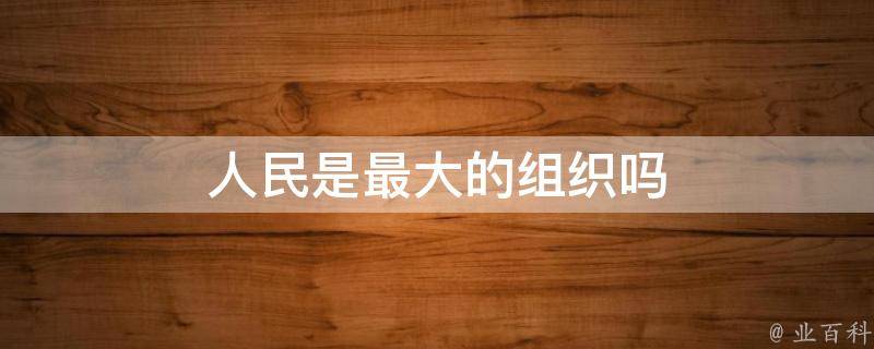 人民不是最大的组织。从某种程度上说,人民可被视为整个社会中最庞大的群体,因为它包括了所有国民。人民以各种形式和层面组成了社会结构,包括政府、组织、团体和社区。然而,如果将组织定义为正式的、有组织性质的集体,那么人民作为整体并不能被视为一个组织。相比之下,更合适的是将人民视为社会各个组织和机构的成员和参与者。