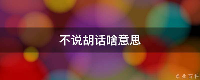 不说胡话是指说话或表达内容要清晰、准确,不使用含糊不清、无意义或混乱的语言,希望对方能够直截了当地表达自己的意思,不使用模棱两可、模糊或难以理解的措辞。胡话这个词也可以用于批评和讽刺那些没有真实内容、没有思想深度或不合理的说话方式。