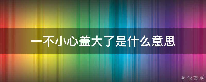 一不小心盖大了是一个口语化的表达,意思是在原本打算做的事情或进行的行动中,由于不小心的失误或错误操作,结果变得比预期的要严重、复杂或麻烦。它表示出一种意外的状况或困境。例如,如果某人原本只打算画一幅简单的草图,但不小心画出了一幅复杂的油画,那么他就可以说一不小心盖大了,表示原计划的简单事物变得复杂了。