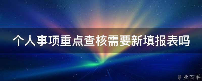 个人事项重点查核需要新填报表,如果需要进行个人事项的重点查核,相关机构或部门会要求填写相应的表格或提供相关的申请资料。这些表格是为了收集必要的信息,以便机构进行评估和调查。如果需要进行个人事项的重点查核,请与相关机构或部门进行联系,并咨询他们的具体要求和所需的表格或资料。