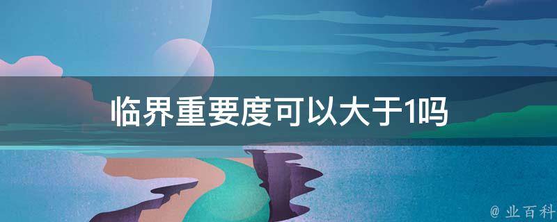 临界重要度不可以大于1。临界重要度的值通常定义在0到1的范围内,表示某个事件或资源对系统的重要程度。临界重要度大于1的概念并不常见,因为它违反了常规定义。然而,在特定领域或特殊情况下,一些自定义的度量参数可能允许超过1的临界重要度值,但这可能是一种非标准或特殊情况。在一般的定义和常规用法中,临界重要度一般不会大于1。