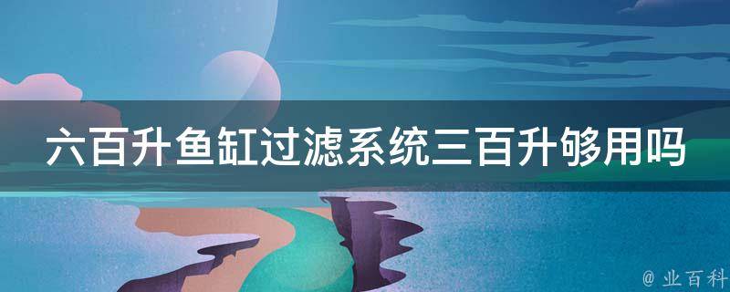 六百升鱼缸过滤系统三百升不够用。过滤系统的容量与鱼缸的容量应该是匹配的,以确保有效的水质处理和过滤。一般来说,过滤系统的容量应该略高于鱼缸容量,以确保足够的水流和过滤效果。一个三百升容量的过滤系统无法充分处理六百升鱼缸的水质。这可能导致水质问题,如污染物累积、水质不稳定或氨氮过高等。