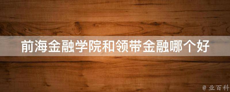 前海金融学院和领带金融是两个不同的金融教育机构,有各自的优势和特点。选择前海金融学院还是领带金融取决于您的个人需求和偏好。如果更青睐实体学校的面对面教学和与实际金融行业有更紧密联系的学习环境,前海金融学院可能更适合。如果更倾向于在线学习和根据自己的时间安排自由学习,领带金融是一个不错的选择。