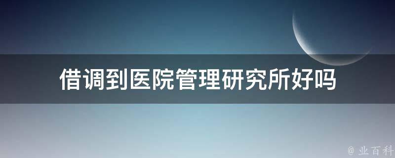 借调到医院管理研究所好,借调到医院管理研究所可以使您接触到更广泛的医疗管理领域的知识和经验。通过与该机构的专业人士合作和交流,可以学习到最新的管理理论、实践和研究成果,提升自己的能力和见解。在医院管理研究所工作,将有机会与医疗管理领域的专业人士建立联系和建立人脉。这可能对您的职业发展和未来的机会产生积极影响。