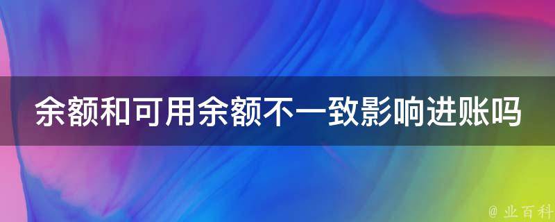 余额和可用余额不一致不影响进账,一般情况下,余额指的是账户中总的金额,而可用余额是指可以立即使用的可用资金。即使可用余额不足,只要账户的余额足够支付进账的金额,仍然可以成功存入资金或收到支付。这是因为进账会增加账户的总余额,而不是依赖于可用余额。