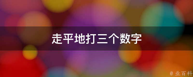 走平地打三个数字是123,这个谜语中的走平地是谜底提示的重点,可以理解为走在平地上。因此,走在平地上轻松自如,轻松到像数数一样顺畅,因此这个谜底是123。走平地的意思是在平坦的地面上行走或奔跑,即没有明显的高低起伏或坡度的地面行走。