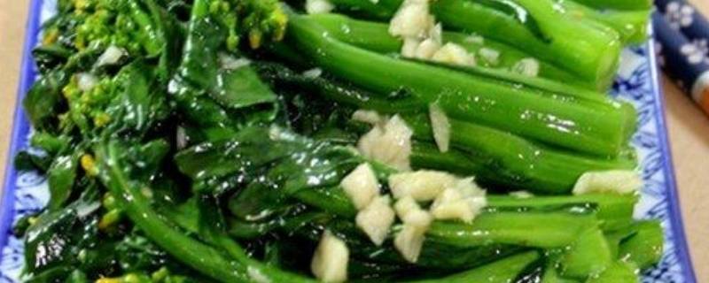 准备食材:大蒜10克、芥蓝250克、橄榄油2克、蚝油3克。菜心洗净切去老梗,切段。大蒜压成蒜泥。炒锅预热,倒少许食物油,放入蒜爆炒,在放入菜心快速翻炒,出锅倒入少许蚝油即可。