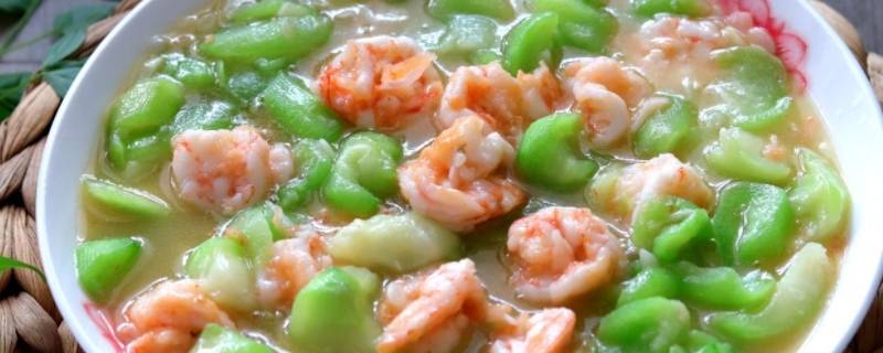 用料:丝瓜一根、虾仁10个、盐、酱油、葱花。