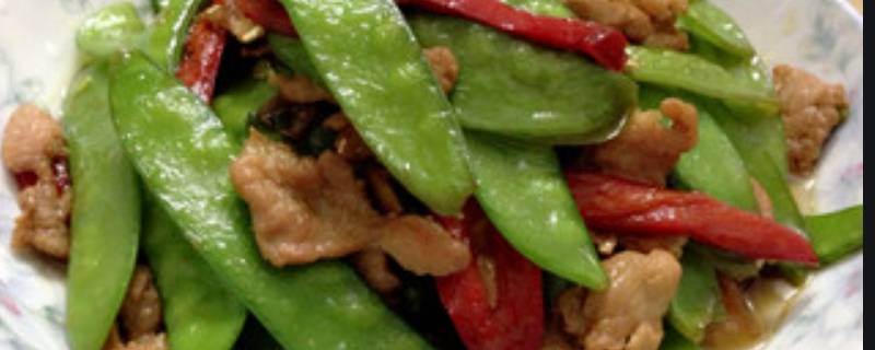 五花肉100克、荷兰豆100克、蒜瓣1个、油少许、酱油1汤匙。