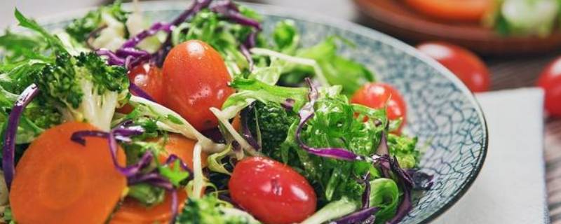 圆白菜、番茄、小黄瓜、青椒、洋葱、番茄酱、沙拉酱、沙茶酱、蛋黄酱、奶油等。做蔬菜沙拉时,可在蛋黄沙拉酱内加入适量甜味鲜奶油,其制出的沙拉奶香味浓郁,甜味加重。蔬菜种类数量可随个人口味随意增减,蔬菜沙拉原料要选新鲜蔬菜,蔬菜切后装盘,摆放时间不宜过长,否则会影响其美观,也会使蔬菜的营养降低。