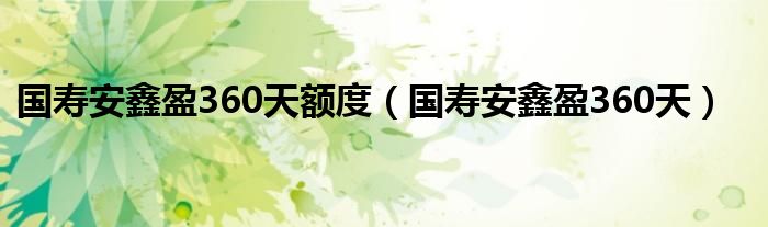 关于国寿安鑫盈360天额度,国寿安鑫盈360天这个很多人还不知道,今天菲菲来为大家解答以上的问题,现在让我们一起来看看吧!