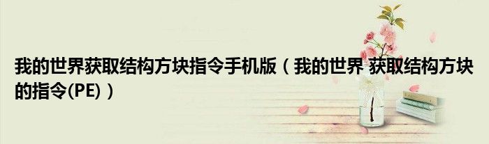 关于我的世界获取结构方块指令手机版,我的世界 获取结构方块的指令(PE)这个很多人还不知道,今天菲菲来为大家解答以上的问题,现在让我们一起来看看吧!