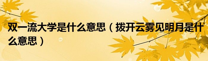 关于双一流大学是什么意思,拨开云雾见明月是什么意思这个很多人还不知道,今天菲菲来为大家解答以上的问题,现在让我们一起来看看吧!