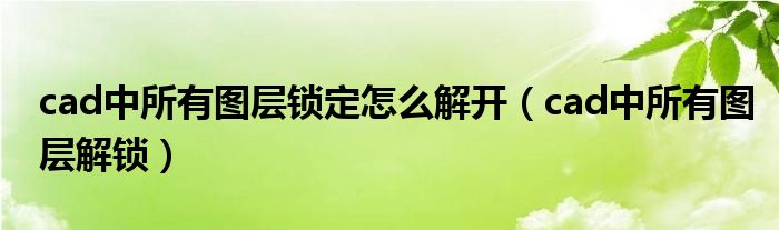关于cad中所有图层锁定怎么解开,cad中所有图层解锁这个很多人还不知道,今天菲菲来为大家解答以上的问题,现在让我们一起来看看吧!