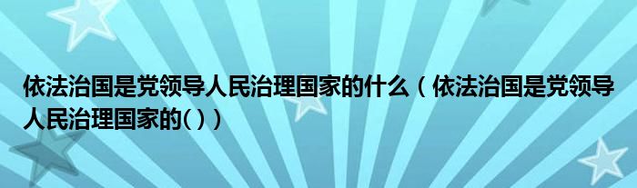 大家好,小联来为大家解答以上的问题。依法治国是党领导人民治理国家的什么,依法治国是党领导人民治理国家的( )这个很多人还不知道,现在让我们一起来看看吧!