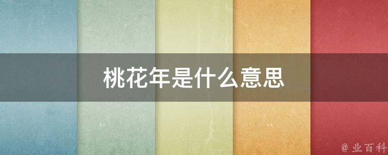桃花年意思是桃花运出现的年份,桃花运俗称犯桃花,在生活当中有正桃花、偏桃花、露水桃花和桃花煞。桃花运通常指正桃花,也就是男女因爱生情,走向恋爱和结婚的一种感情运。通常发生在20岁到28岁之间,属于正源,也属于得到大家祝福最多的一种男女之间的正常交往。