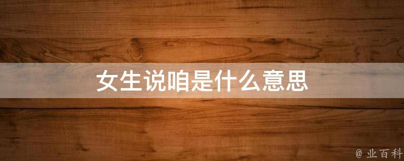 女生说咱是她和你两个人的意思。当一个女生说咱,则证明你们两个人的关系是很亲密的,一般女生和很亲密的人才会用咱这个字,以此表明她把男人当自己人。咱是一个北方口语化的称谓词,属于俗语范畴,从语用功能来看,它可以附着一些特殊的感情色彩,既能表达亲密喜爱的情感,也能表达倨傲不满的情绪。