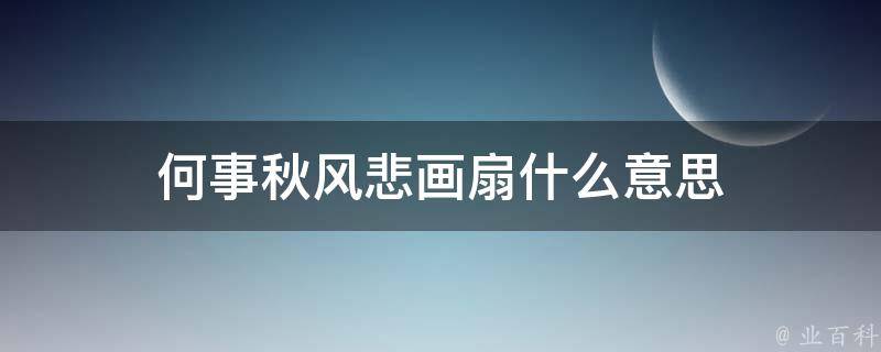 最佳答案何事秋风悲画扇的意思是为什么秋风会悲伤地吹动扇子呢?这句话通常用来形容爱情的变化和无奈。这句话的出处是纳兰性德的《木兰词·拟古决绝词柬友》。这是一首以女子的口吻,抒发了被丈夫抛弃的悲伤之情的词作。原文:人生若只如初见,何事秋风悲画扇。等闲变却故人心,却道故心人易变。骊山...