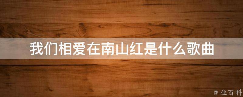 我们相爱在南山红的歌曲名字就是《我们相爱在南山红》,由风哥演唱。部分歌词是:蓝天下我们肩并着肩,我们的约定永不改变,我们相爱在南山红,久别之后期待的重逢,你是我心中最美丽的彩虹。