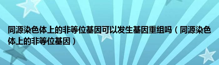 大家好,我是小科,我来为大家解答以上问题。同源染色体上的非等位基因可以发生基因重组吗,同源染色体上的非等位基因很多人还不知道,现在让我们一起来看看吧!